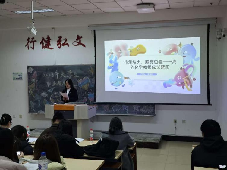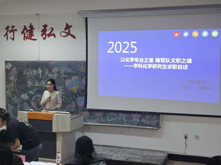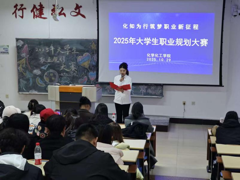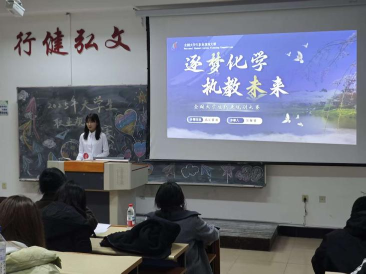 为增强大学生科学规划职业生涯的意识,引导大学生树立正确的成才观、择业观、就业观,努力提高大学生就业创业能力,化学化工学院于10月29日14:00在五角大楼103室开展2025年大学生职业规划大赛。此次大赛特别邀请音乐与舞蹈学院党委副书记杨柳,化学化工学院苏爽月、王雪担任本次比赛评委,化学化工学院党委副书记魏代梅、辅导员杨艾琳莅临出席现场。