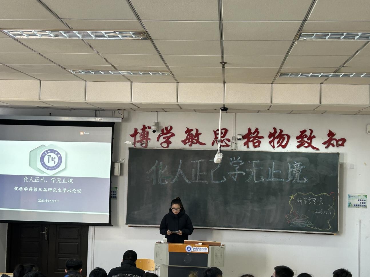 12月7日上午,化学化工学院化学学科第三届研究生学术论坛于综合楼702成功举办。本次论坛的主题为“化人正己、学无止境”,旨在引导研究生聚焦物理化学、无机化学、分析化学等学科,在学科传统、学科边界的探索中思考重大、前沿、热点问题,增强研究生学术研究能力和创新能力,营造勤于思辨、善于思考、严谨治学、敢于创新的良好学风和浓厚的学术氛围,培养研究生深厚的学术素养和宽广的科研视野。论坛邀请了数名老师和全体研究生进行旁听对参会论文进行评审并及时提供专业性的学术指导。21级学硕全体同学通过线上和线下相结合安排了20场精彩的学术报告,报告结束后同学们积极与师哥师姐进行学术上的交流。