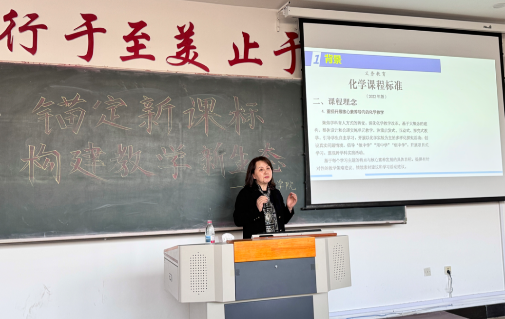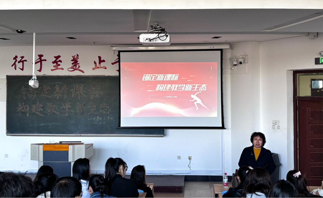 为推动学科教学(化学)专业领域的创新,提高专业硕士人才质量,提升学生的综合素质,2025年4月16日下午,牡丹江市教育教学研究院初中化学教研部主任、化学教研员张颜涛应邀莅临我院,在五角大楼205室张主任为我院师生带来了一场题为《锚定新课标,构建教学新生态》的精彩学术讲座。此次讲座由化学化工学院学院王慧老师主持,学院全体专业硕士研究生以及部分本科生参加了本次讲座。