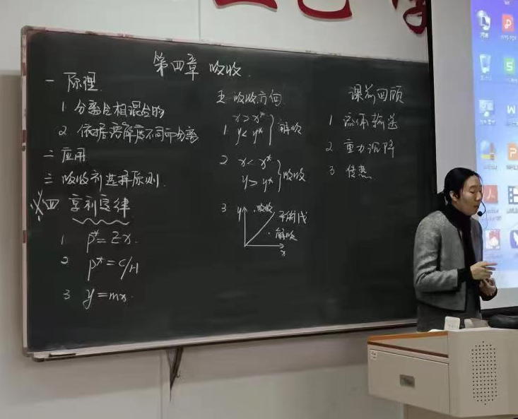 为进一步提升课堂教学质量,发挥先优教师的先锋示范作用,持续推动我院年轻教师人才培养工作再上新台阶,11月2-3日,化学化工学院于综合楼教室组织开展先优教师示范课活动。本次示范课由隋朝老师进行讲解《化工基础》,我院所有新入职教师及部分无课教师观摩学习示范课课程。