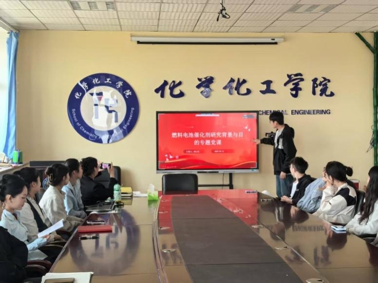 化学化工学院研究生党支部于2025年5月12日在理工楼564开展2025年毕业季专题党课,本次会议由支部书记赵玥老师主持,全体党员参加。多个毕业生党员展示了将党建工作与前沿研究深度融合的实践成果。从储能材料到环保技术,从燃料电池到电化学传感,党员们以“科技报国”为使命,将实验室攻关方向与国家重大战略需求紧密结合,形成了一批具有突破性意义的创新成果,为“党建+科研”双轮驱动模式提供了鲜活样本。