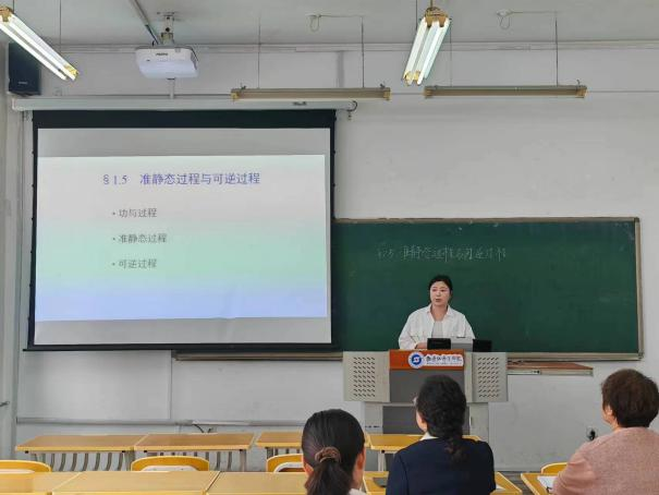 为进一步促进新入职教师教学能力和专业素养的提升,提高课堂教学质量,6月26日15:00,化学化工学院于综合楼709开展新入职教师集体听评课活动。本次活动由教学督导组任玉兰老师、蒋舰老师、隋朝老师以及物理化学教学团队贾林艳老师、邵长斌老师、杜永欣老师参与听评课,新入职教师冯敏试讲。冯敏老师试讲的内容是物理化学课程中《准静态过程与可逆过程》章节内容。