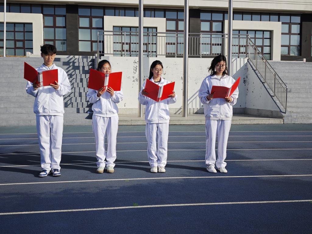 紧接着,2024级新生代表赵阳、王中铎、张默涵、吕涵煜带来诗朗诵《青春逐梦,爱国同行》。他们用激昂的声音,向新时代青年发出号召:从深化思想认识、投身实践创新、积极奉献服务三个方面,不断实现自我提升。鼓励大家树立远大理想、勇挑时代重担、磨砺坚韧意志、永葆奋斗精神,积极投身全面建设社会主义现代化国家的伟大征程。