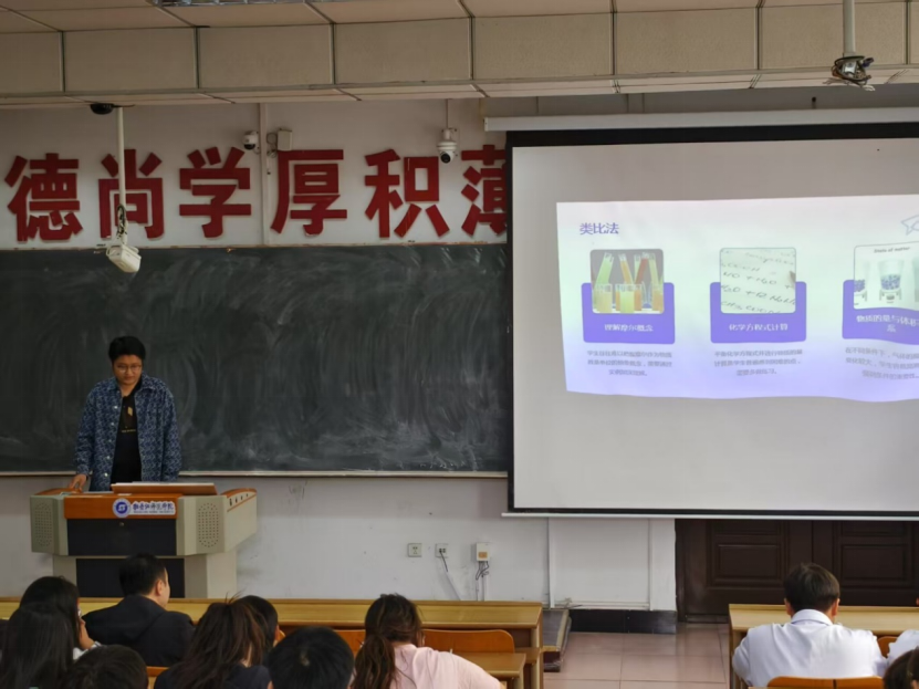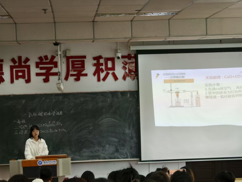 为持续深化学风建设,夯实师范生专业素养,增强师范生教育创新能力,培育优秀教学实践人才。化学化工学院于5月18日上午9:00在综合楼126举行师范生技能大赛。本次大赛邀请了夏殿东、王天龙、邵长斌三位老师作为评委,2023级师范生参加比赛。